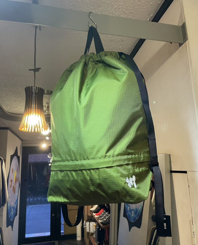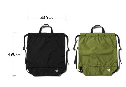 リップストップ生地を使用し頑丈でありつつ軽量なナップサック。 容量は大きく、外側のポケットにもたくさん入ります。